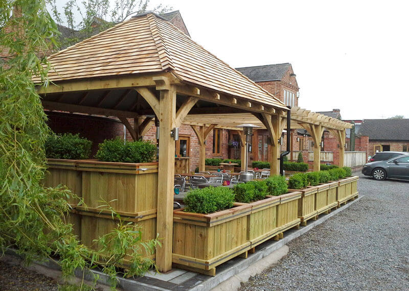Gazebos are fantastic structures that can transform your garden space into a practical or relaxing area, enhancing the value of your property. Whether they have a covered roof or not, gazebos can be used for outdoor dining, providing a sheltered spot for family and friends to enjoy all year round. They also offer a practical solution for growing plants, offering shade and protection from the rain. We are frequently seeing more demand for our gazebos as a shelter for hot tubs, providing a cosy and private space for relaxation.